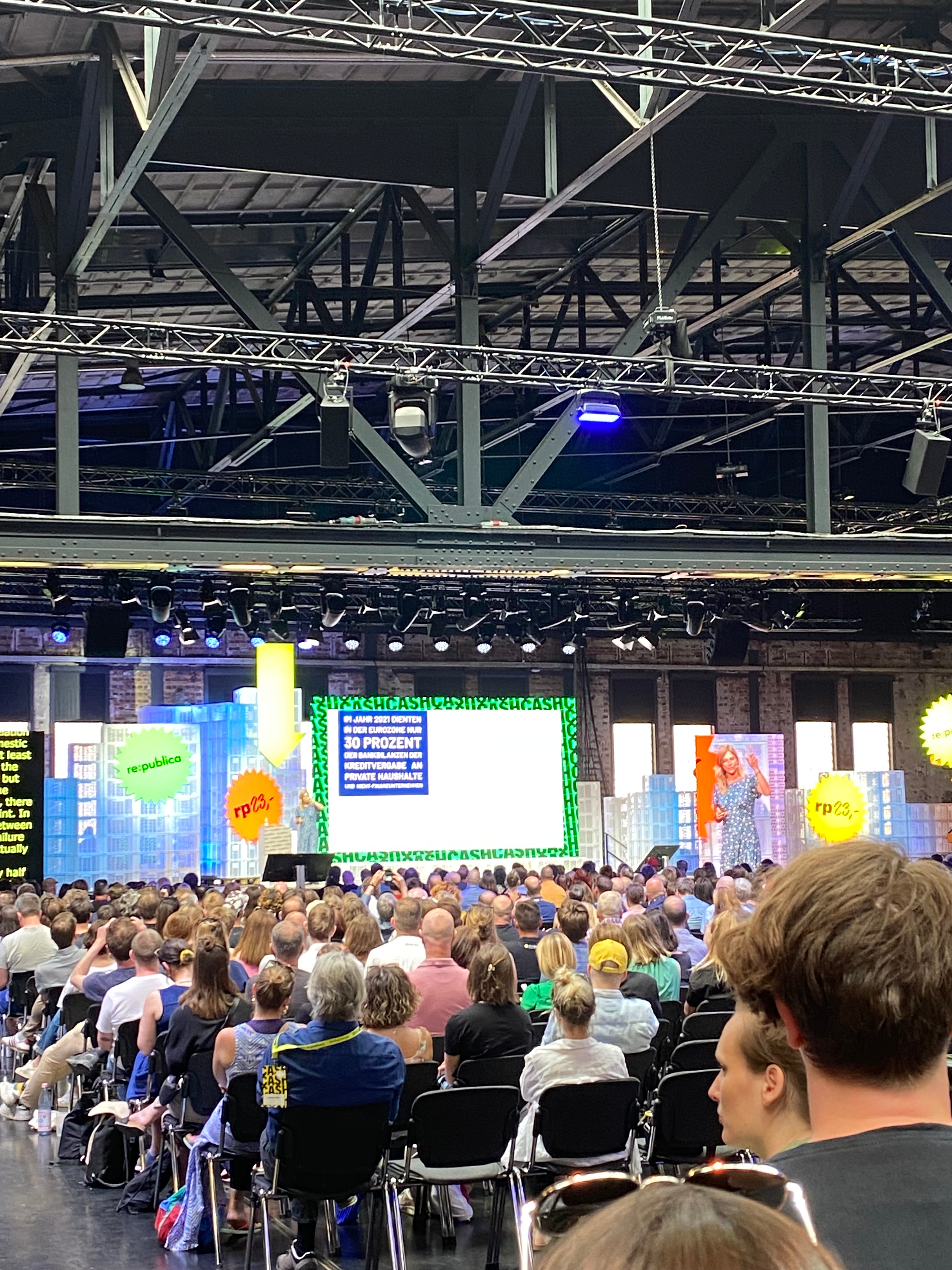 Vom 5. - 7. Juni fand in der Arena Berlin und dem Festsaal Kreuzberg die re:publica statt. Das jährlich in Berlin stattfindende Festival widmete sich drei Tage lang den Chancen und Herausforderungen der digitalen Gesellschaft. Auch der Green-AI Hub Mittelstand war als Teil des Programms des Bundesumweltministeriums vor Ort. Im Rahmen der Vorstellung der Initiative wurden die Besucher*innen dazu ermutigt, die Potenziale von KI-Technologien und mögliche positive Auswirkungen auf Unternehmen, Wirtschaft und den Schutz der natürlichen Umwelt zu erkunden.