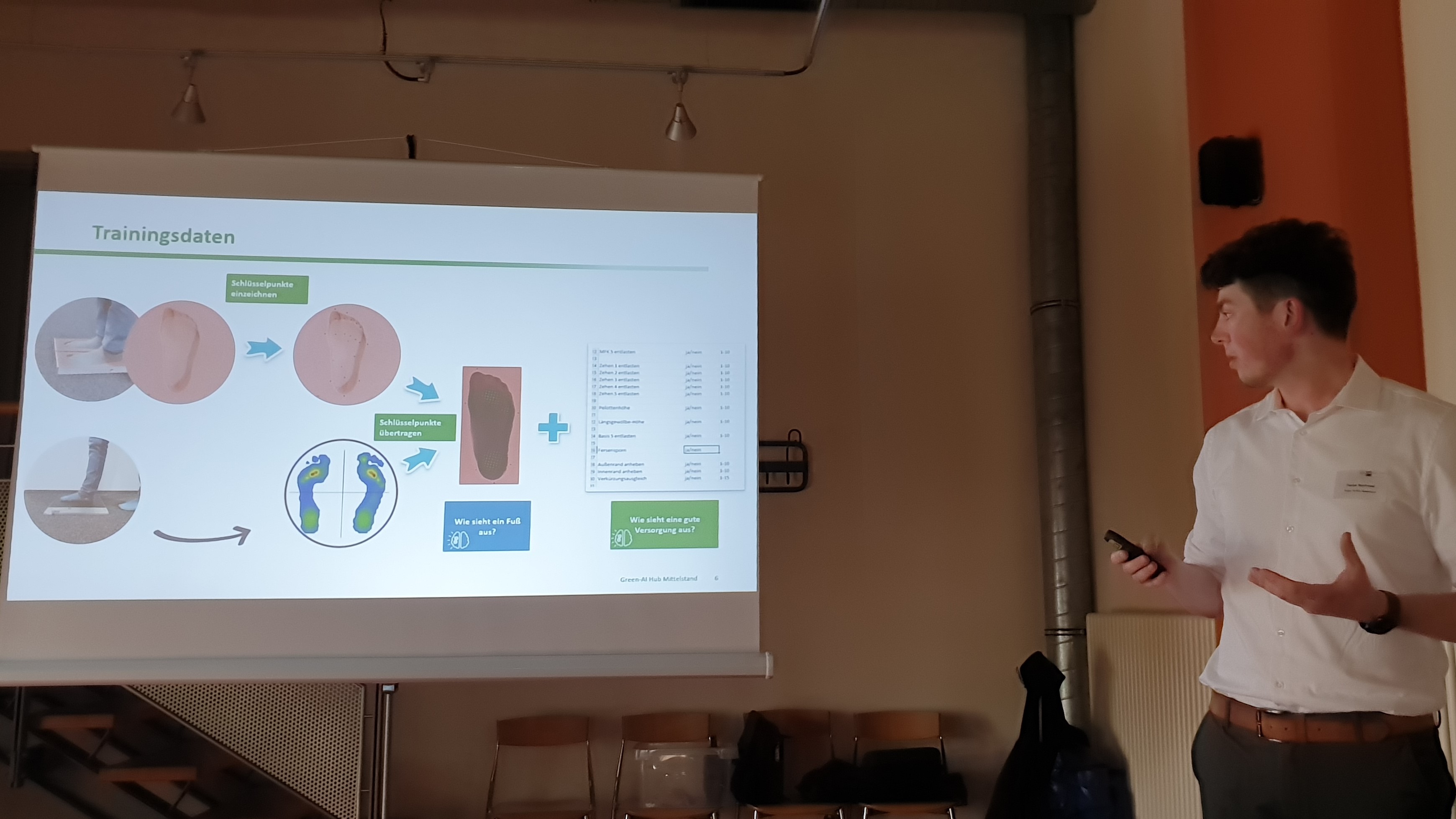 Besonders spannend waren die Demonstratoren des Green-AI Hub Mobil, die den Teilnehmenden einen direkten Einblick in die Einsatzmöglichkeiten von KI gaben. Von Augmented Reality-basierten Wartungslösungen über die Zustandsüberwachung von Maschinen bis hin zum Intelligenten Lagermanagement – die Vielfalt der Anwendungen verdeutlichte eindrucksvoll, wie KI den Mittelstand transformieren kann. Die Teilnehmenden hatten ein reges Interesse an den Demonstratoren und es entwickelten sich spannende Gespräche. Insbesondere der Demonstrator für das Intelligente Lagermanagement erwies sich hoher Aufmerksamkeit und mindestens drei Unternehmen bekundeten ein hohes Interesse solch eine Lösung umzusetzen in ihrem Unternehmen umsetzen zu wollen. Die Veranstaltung bei der IHK Dresden war somit nicht nur ein Austausch über theoretische Konzepte, sondern bot konkrete Einblicke wie KI in die Anwendung in mittelständische Unternehmen integriert werden kann.