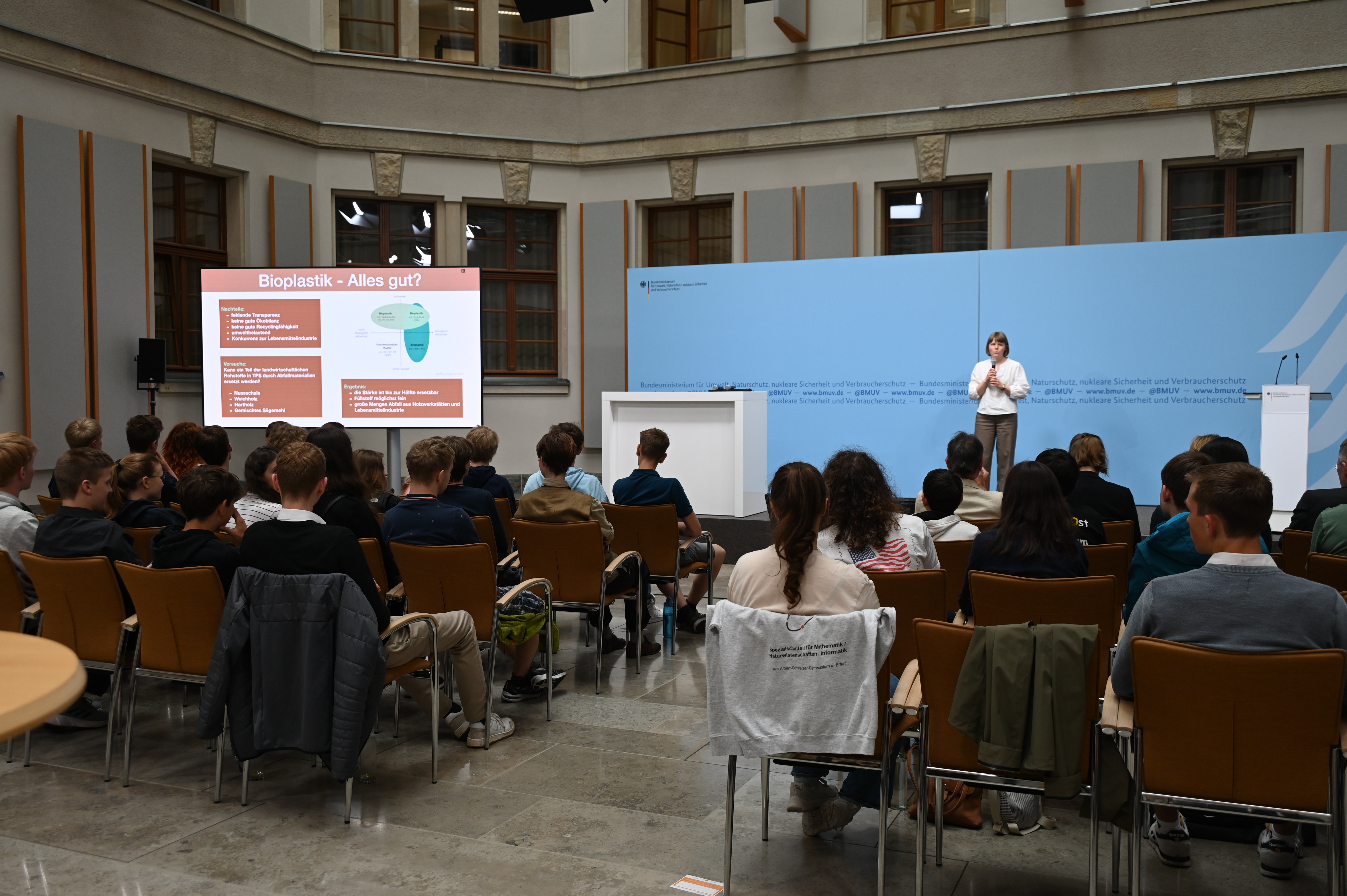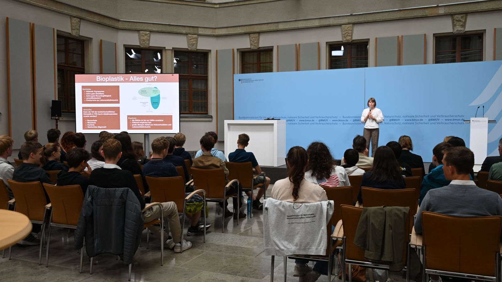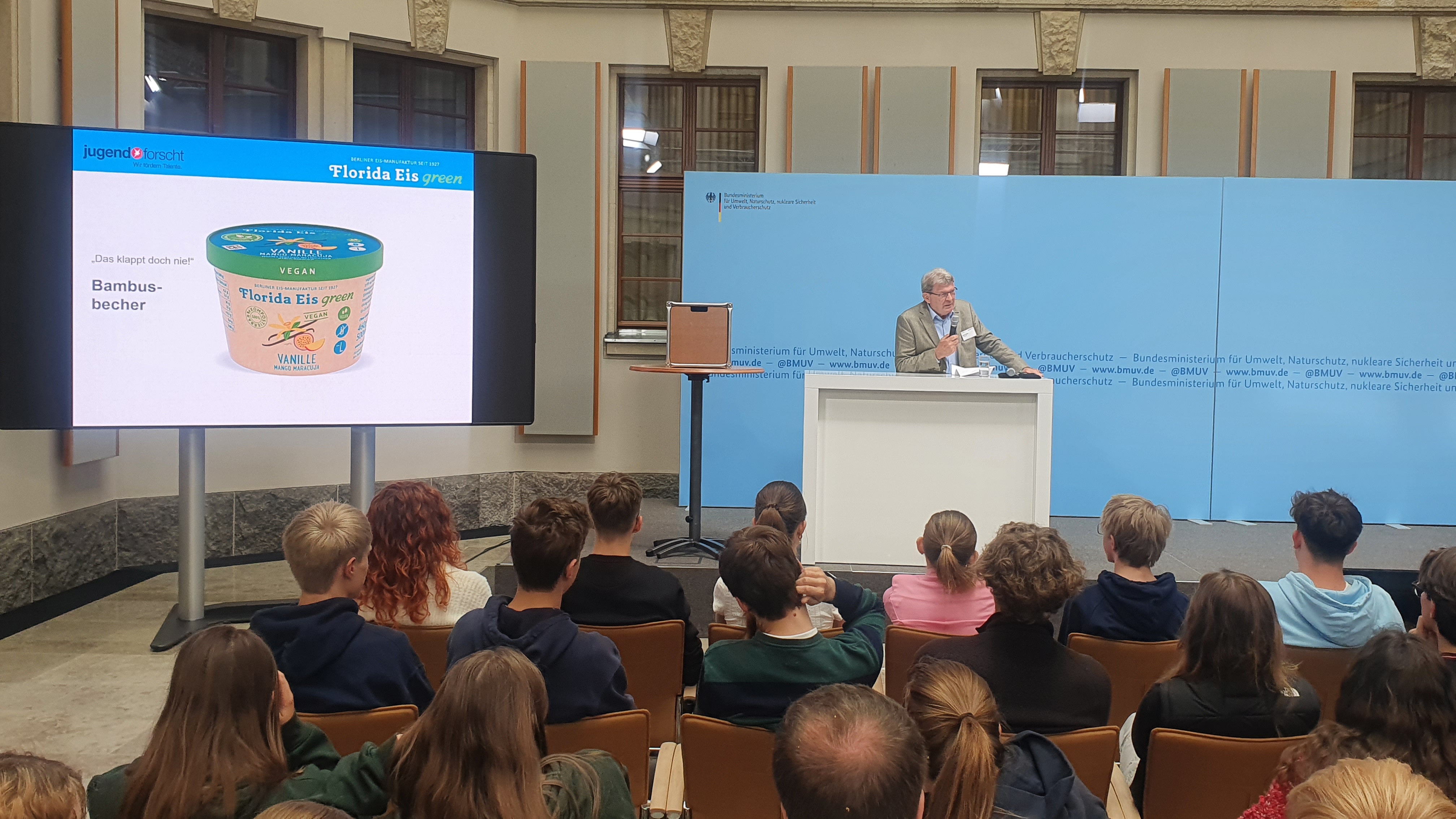 Ein weiteres Highlight der Veranstaltung war die Vorstellung des Sonderpreises „Ressourcenschonung und Ressourceneffizienz“. Bundesumweltministerin Steffi Lemke und Prof. Dipl.-Ing. Holger Rohn vom Netzwerk „Bildung für Ressourcenschonung und Ressourceneffizienz (BilRess)“ und der Technischen Hochschule Mittelhessen präsentierten den Preis, der herausragende Projekte auszeichnet, die zur nachhaltigen Nutzung von Ressourcen beitragen.