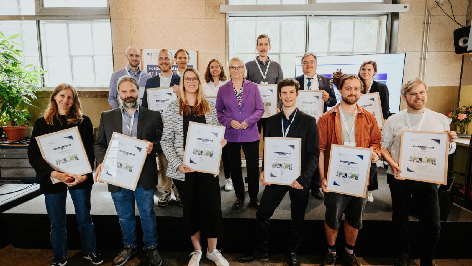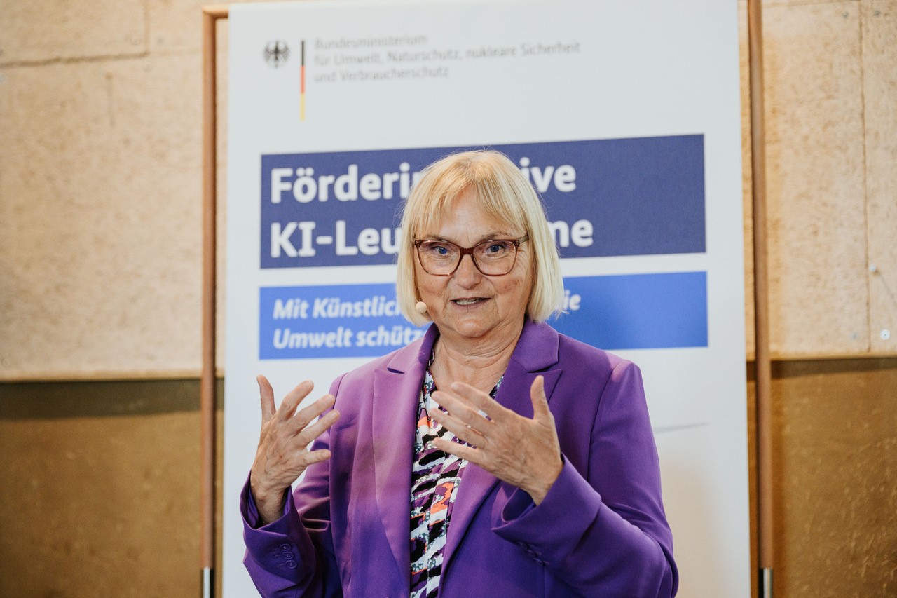 Am 11. Juni 2024 war es wieder so weit: Das Vernetzungstreffen der Förderinitiative KI-Leuchttürme des Bundesministerium für Umwelt, Naturschutz, nukleare Sicherheit und Verbraucherschutz (BMUV) brachte zahlreiche engagierte Teilnehmende aus den geförderten Vorhaben zusammen. Im Impact Hub in Berlin-Neukölln übergab die Parlamentarische Staatssekretärin Dr. Bettina Hoffmann Auszeichnungen an die ersten 13 erfolgreich abgeschlossenen KI-Leuchtturmprojekte. Sie zeigen beispielhaft, wie Künstliche Intelligenz für Umwelt und Klima eingesetzt werden kann.