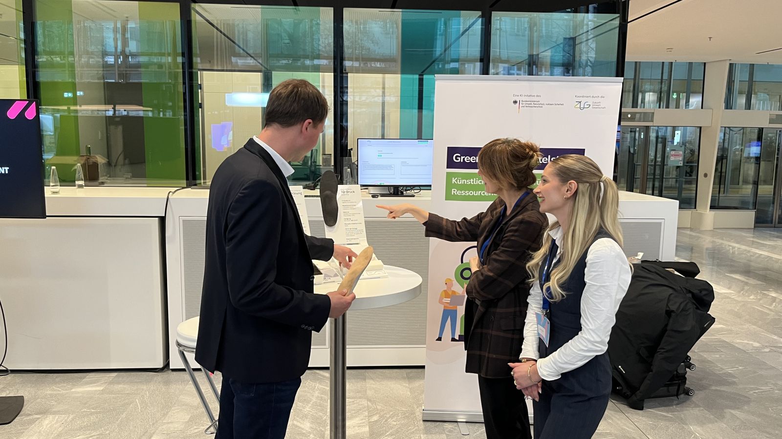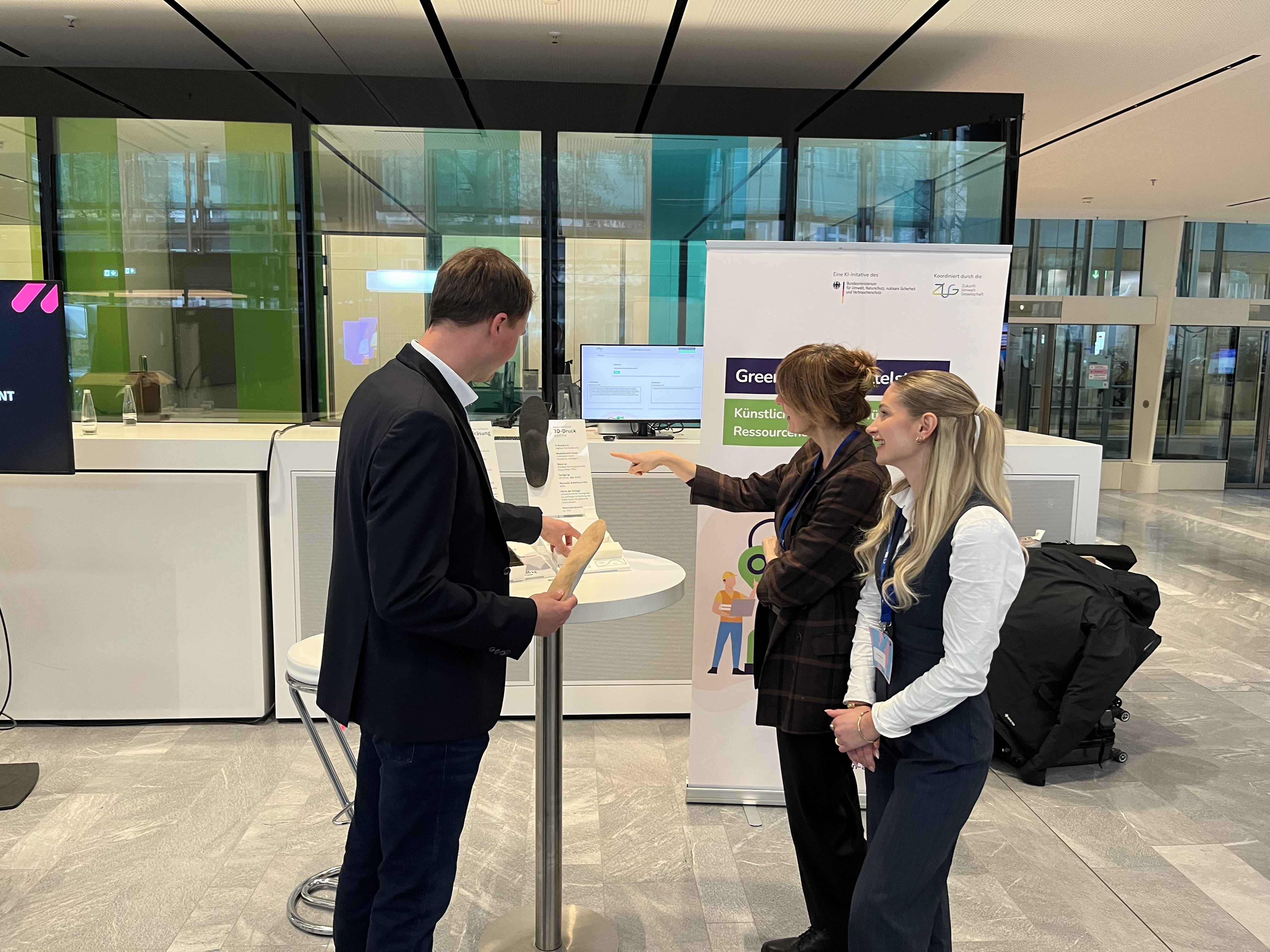 Mit dem Green-AI Hub Mobil, unseren KI-Demonstratoren und den KI-Pilotprojekten waren wir bundesweit unterwegs, haben zahlreiche Veranstaltungen besucht. Ob auf der Bühne, in Panels, bei Interviews oder in Workshops – das Thema „Green AI“ wurde vielseitig und praxisnah vermittelt. Zu den Highlights zählten unser KI-Panel auf der Hannover Messe sowie unser Workshop und unsere Showcases im Rahmen der AI Conference des Bundesumweltministeriums bei der Zukunft – Umwelt – Gesellschaft (ZUG) im November in Berlin. Über unsere Onlineplattform haben wir eine Reihe von Workshops zum Thema „Green-AI: kompakt!“ durchgeführt. Diese sind mit über 290 Anmeldungen auf große und positive Resonanz gestoßen.