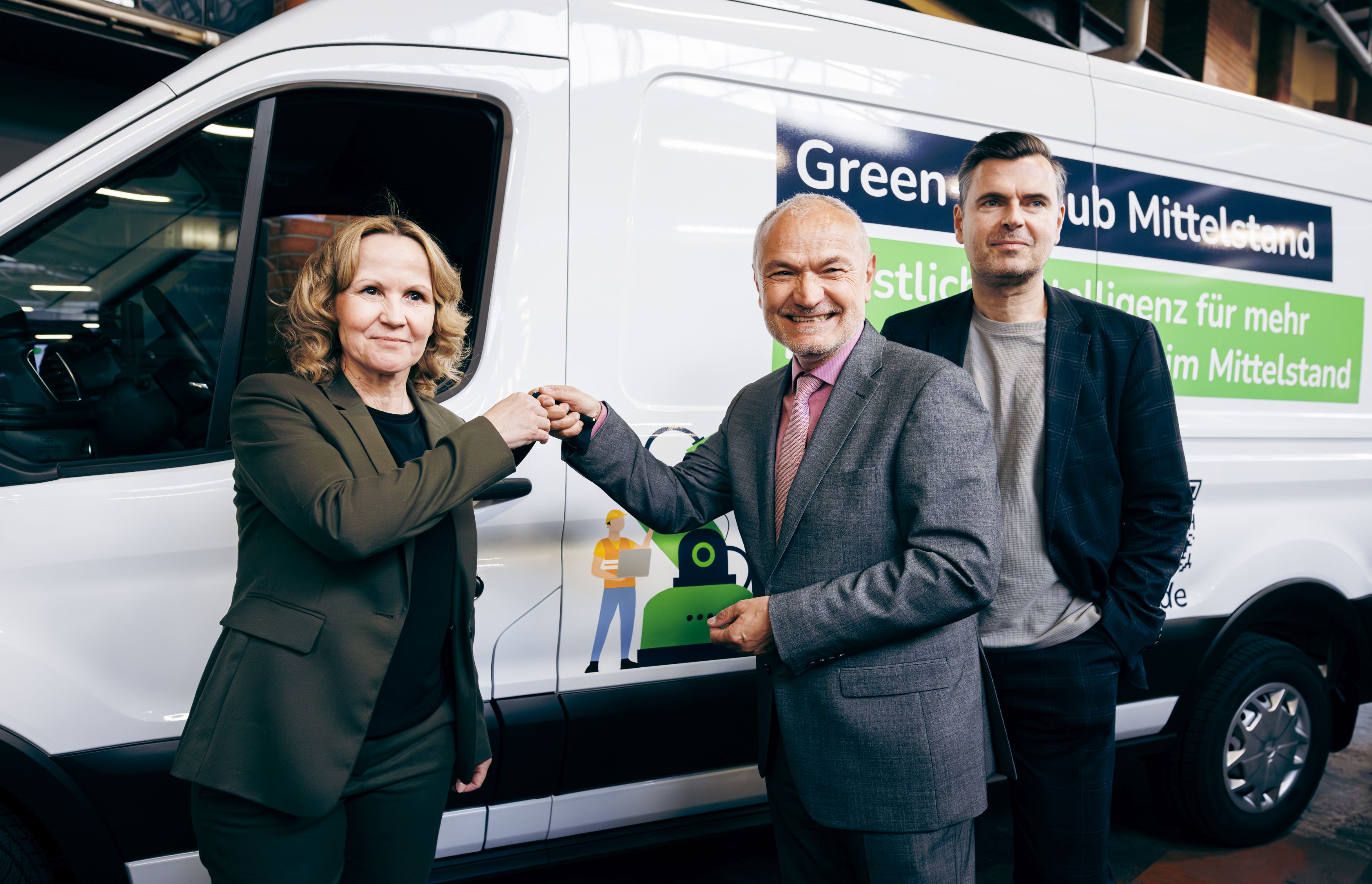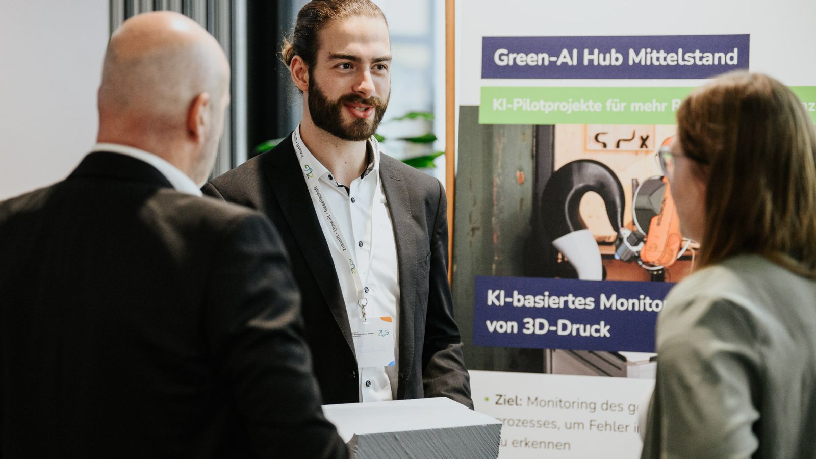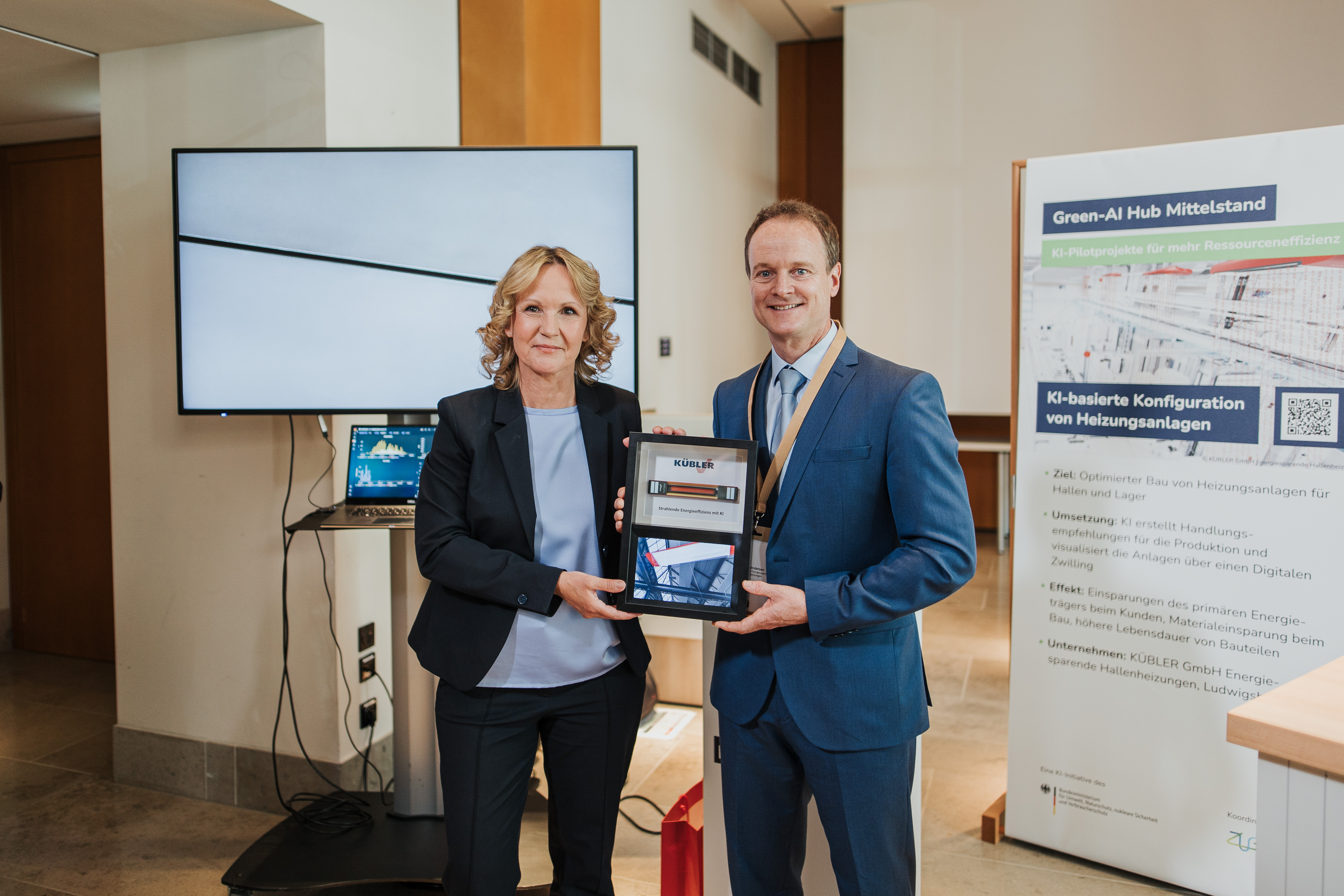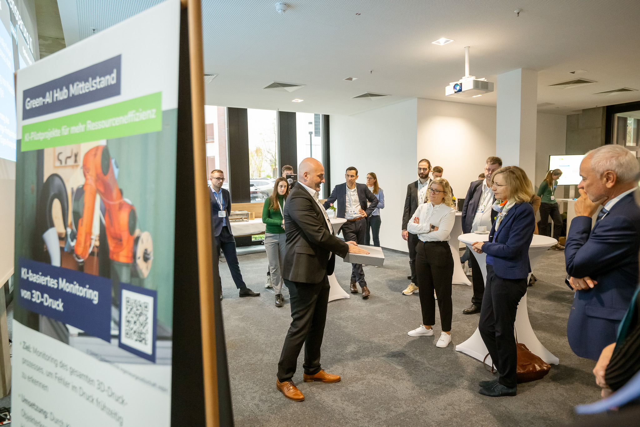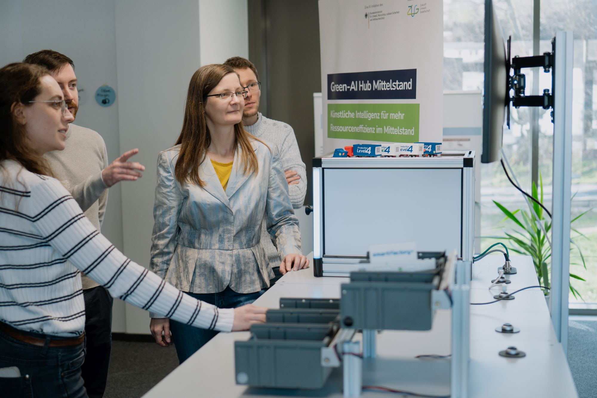 Ein weiteres Highlight des Jahres war der Start des Green-AI Hub Mobil, der im März von Bundesumweltministerin Steffi Lemke und Stefan Demuth, Geschäftsführer der Zukunft – Umwelt – Gesellschaft (ZUG), auf dem Zukunftstag Mittelstand des BVMW offiziell verkündet wurde. Die KI-Demonstratoren an Bord des Mobil, entwickelt durch das Deutsche Forschungszentrum für Künstliche Intelligenz (DFKI), veranschaulichen Unternehmen das Potenzial grüner KI für Produktion, Lagerung, Self-Service und Qualitätsmanagement.