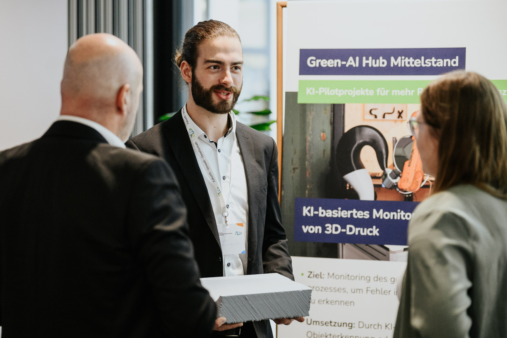 In diesem Jahr konnten wir die ersten zehn KI-Pilotprojekte erfolgreich abschließen. Diese zeigen eindrucksvoll, wie Künstliche Intelligenz Ressourceneffizienz und Nachhaltigkeit im Mittelstand fördern kann. Bei 4Packaging GmbH sorgt KI für die Qualitätsbestimmung von Tiefdruckzylindern, während Brammibal’s Donuts und Foodtracks KI-basierte Prognosen für die Lebensmittelproduktion einsetzen. CircularTree nutzt KI, um CO₂-Werte von Produkten präzise zu identifizieren, und Concular implementiert datenbasiertes Matching mittels KI in der Gebäudeplanung. Die GreenGate AG optimiert ihre Routen- und Dispositionsplanung mit KI, und die Johann Herges GmbH setzt auf KI-gestützten 3D-Druck für orthopädische Einlagen. Die INTEX EDV-Software GmbH steigert die Ressourceneffizienz in der Textilbranche, während Köstler KI-basierte optische Qualitätssicherung für technische Textilien entwickelt. Die KÜBLER GmbH konfiguriert energiesparende Hallenheizungen mit KI, und SMWS überwacht 3D-Druckprozesse mittels KI. Weitere acht KI-Pilotprojekte haben wir im Herbst gestartet. Wie die derzeit laufenden Pilotprojekte KI dafür nutzen, um ressourcenschonender zu wirtschaften, erfahren Sie hier.